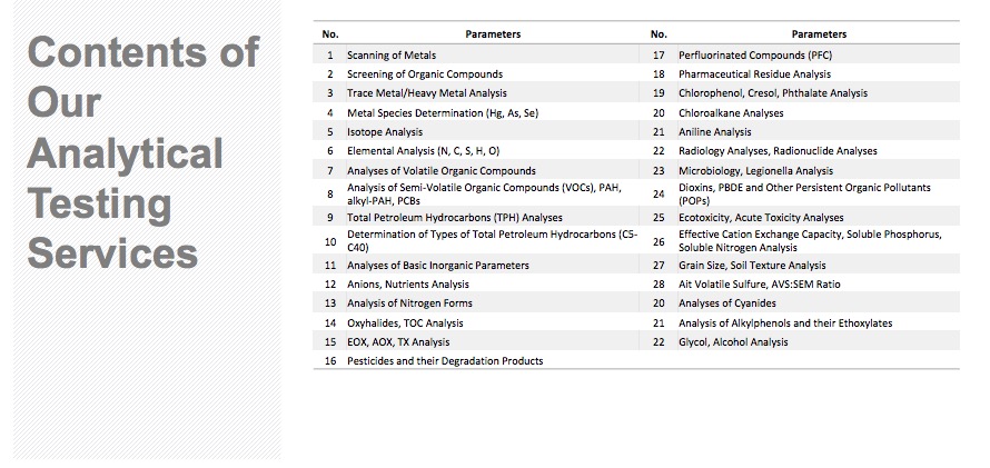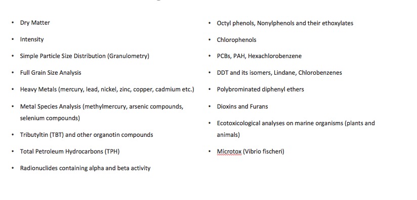 Sediment analysis is conducted under the Regulation on the Control of Pollution Caused by Hazardous Substances in Water and Environment and the Regulation on Environmental Management of Dredging Material. Sediment consists of organic and inorganic materials accumulated at the bottom of water bodies.